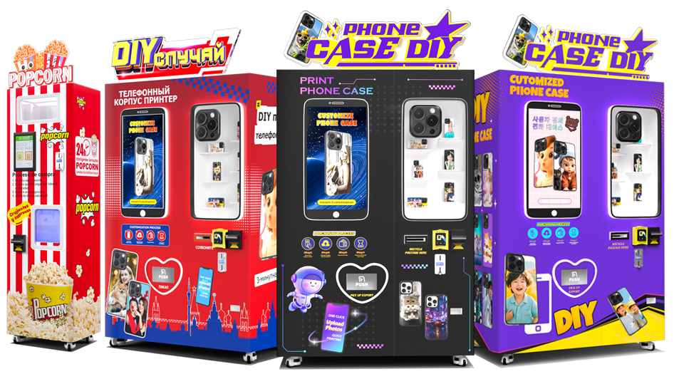 涵盖手机壳自动售卖机、爆米花自动售卖机、披萨自动售卖机、棉花糖自动售卖机、冰激凌自动售卖机及通用型自动售卖机等、全方位满足不同场景。