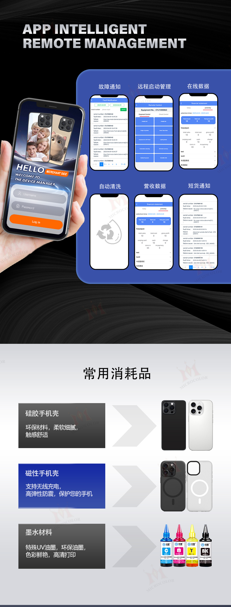 | 智慧后台 | 可查看经营流水、订单、设置货道的手机型号、数量 |